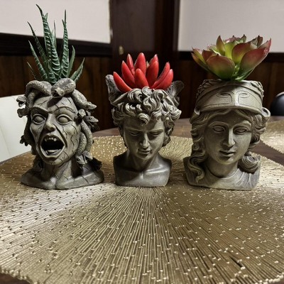 Darware Mini Resin Medusa / Athena / Perseus Planter, 3pc Set; Garden Decor Statue Flower Pot
