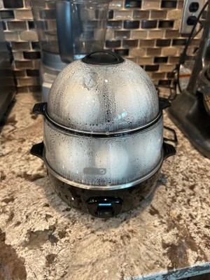 The Dash Deluxe Express Egg Cooker cooks 12 eggs in less time than it takes to boil water on the stove. Great for families, the Deluxe Express Egg Cooker offers all of the features of our original Express Egg Cooker, including a larger omelet bowl and poaching tray. Just set it and walk away: the auto-off feature ensures perfectly cooked eggs, and the musical chime will alert you when done. A versatile steamer, the Deluxe Express Egg Cooker also quickly cooks vegetables, dumplings, seafood, and more, all within minutes of pressing the start button!