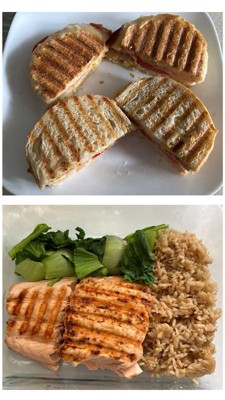 I knew it'd be small, but it could accommodate two round sour dough sandwiches pressed in the grill, and two salmon filets on the griddles. Both meals came out perfectly.