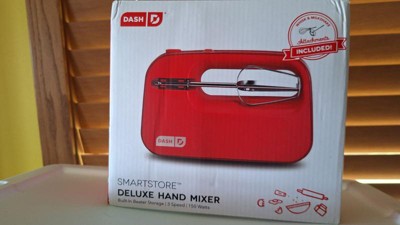 Love all my dash products! I have a little mini griddle, waffle, makers, rice, cooker, egg bite maker, and now the smart store, hand mixer. Love how the beaters store in the unit and how it has a flat bottom so it will stand up and not make a mess all over your counter
