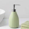 - Refreshing embossed woven-look soap/lotion pump in sage green, brings sophsiticated style and textural appeal to your countertop