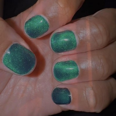 Beautiful color! I got so many compliments on it and I loved it. It changes from a green to a purple, depending on how you move your hand. That being said, they started lifting fairly quickly. I had to remove after about 4 days because my hair kept getting stuck near the cuticle. They did not chip at all in that time, though. I would definitely purchase again and just know they don't last as long.