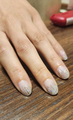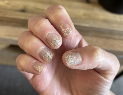 I love the glitter nails and find them to be super durable. These, however, didn't last as long and started to peel from the edges of my nails (not near my cuticles, at the end). I feel like the filing wasn't as smooth for these. I loved the look otherwise.