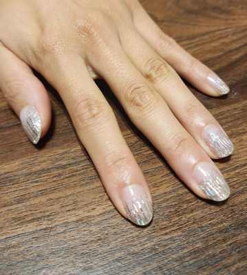 Topping the charts and coming in hot at #1. Sheer silver gel nail strips featuring iridescent silver glitter and party streamer accents with a glossy, high-shine finish. GLOSS Ultra Shine Gel easy-to-apply nail strips deliver quick, long-lasting results and wear for up to 14 days. These nail strips have no scent, are non-damaging, and don’t require any dry time, leaving you with a ready-to-wear manicure in minutes!
