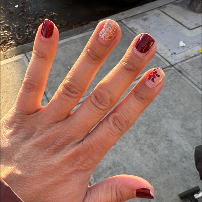 I love the red and sparkles ! I wish it wasn’t pink. I feel like because it was a light color it was a little see through. So I ended up doing them all red. Love love the color !