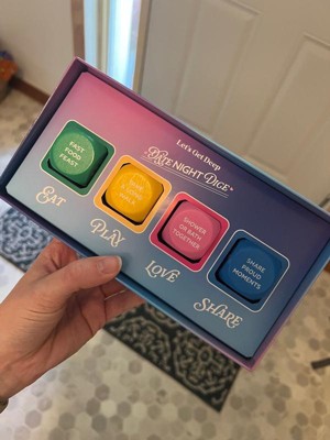[This review was collected as part of a promotion.] My husband and I really enjoy this dice game. It's a simple yet effective way to spice up our evenings and try new things together. It's like having a built-in activity planner that always keeps things exciting and unexpected. We love how it encourages us to step out of our comfort zones and try activities we might not have considered otherwise. The packaging is very catchy with multiple glossy colors. I highly recommend this board game for couples!