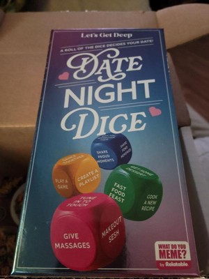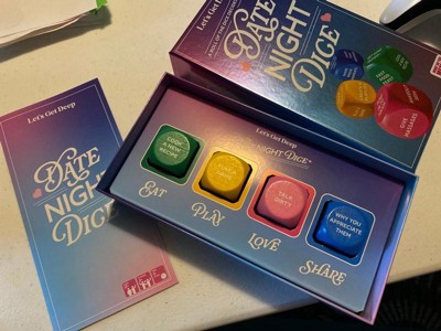 [This review was collected as part of a promotion.] Take your date night into a whole new level! Seriously this is such a fun cute game, we're things get heat up pretty quickly. The dices spicy levels range form cute, mild to whoa get a room. I love how cute the dices are, great ideas on all sides.