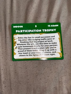 [This review was collected as part of a promotion.] This game really helped my husband and I find ways to spend more quality time time with each other. It is great for couples that have trouble figuring out what to do. The cards are so cute and we save them in our scrapbook for memories.
