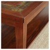 - Wood and stone console table is perfect for an entryway or behind a couch