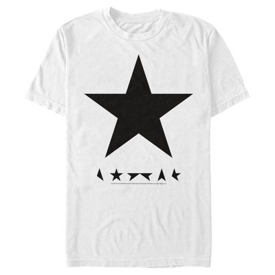 • GRAPHIC TEE: David Bowie's Blackstar album is created on this tee. A big balck star decorates the center while smaller pieces of the star from a line below. The word Bowie appears at the top in black letters.