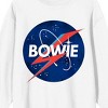 - CUSTOM DESIGNED: Featuring a big colorful graphic of "Bowie" in a NASA-like logo, this white crew neck sweatshirt makes a perfect addition to the wardrobe of any David Bowie fan!