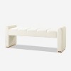The elegant bench combines modern design with comfort, making it a versatile addition to any room. Featuring solid rubber wood legs, it boasts durability and stability, ensuring long-lasting use. The distinctive piano key design on the sides adds a unique, sophisticated touch, elevating the style of your living space. The thick padded seat cushion provides comfort, making it suitable for lounging, sitting, or even using as a decorative accent. Whether placed in the entryway for a convenient seating spot, in the living room for additional seating, or at the foot of your bed for a stylish touch, this bench effortlessly blends into various settings. Perfect for enhancing your home's decor while offering practical use, this bench is as functional as it is stylish. Whether you're welcoming guests or enjoying a quiet moment, this bench adds a layer of comfort and elegance to your space.