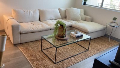 A: The rug is primarily made of 81% jute, providing a natural texture.