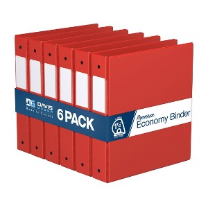 Davis Group 6pk 1.5" Premium Economy Round Ring Binders Red: Hard Cover, 350 Sheet Capacity, 2 Pockets, Polypropylene