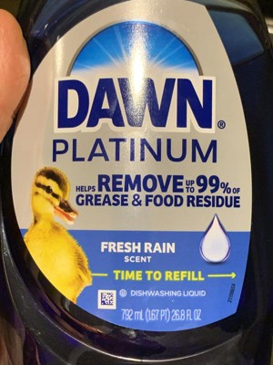 - Dawn Platinum gives you a squeaky clean you can see and feel. Removes up to 99% of Grease and Food Residue