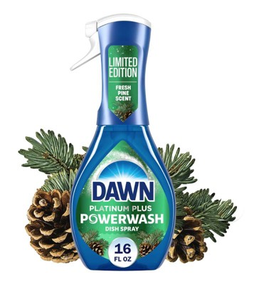 [This review was collected as part of a promotion.] “Works just as great as other Dawn sprays! Love the continuous spray the packaging has. The fresh pine scent is amazing—like a winter forest in your kitchen!”