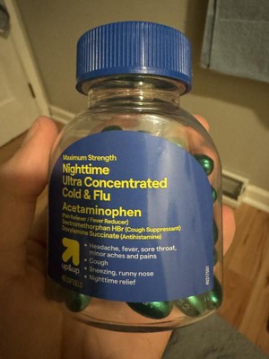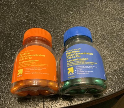 Keep cold and flu treatment ready at home with the 96-Count Daytime & Nighttime Maximum Strength Cold & Flu Softgels from up&up™. This pack of 96 softgels includes 48 for daytime and 48 for nighttime, with acetaminophen, dextromethorphan HBr, phenylephrine HCI and doxylamine succinate to help relieve nasal congestion, coughs, headaches, fevers, sore throats and sneezing and runny noses. Suggested for ages 12 and above, these maximum strength softgels are a great addition to your medicine cabinet.
