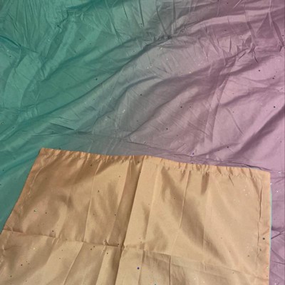 [This review was collected as part of a promotion.] The colors are just as vivid as the pictures show! The ombré of the purples, teals and glitter are any teens dream bedding colors. It's beautiful, so soft and light weight! A huge plus for me was that the sequins and glitter aren’t overwhelming, and haven’t fallen off during use! The twin size fit my daughters bunk bed perfectly. I’m very happy with this bedding and know that she will have sweet soft comfortable dreams with it, while recommending it to all our friends!
