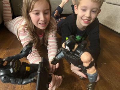 [This review was collected as part of a promotion.] My son has had so much playing with these toys. He likes that they come with add-on pieces that he can put on both Batman and Bane. The cap being a softer fabric is also a nice touch. - Product received for free from Butterly.com in exchange for an honest review.