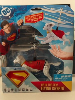 Let Krypto take flight with the SUPERMAN Up RC Toy, where action-packed fun meets interactive technology! This 7.5-inch hovering superdog brings imagination to life as Krypto hovers and flies above your child’s hand using exclusive hand-controlled flight tech—no remote needed! Perfect for birthdays, holidays, or everyday play, this RC toy includes a USB charging cable, so Krypto is always powered up for thrilling adventures. Kids will love watching their “super” best friend soar, hover, and zoom as they invent daring missions in Metropolis. Designed for Super Heroes fans aged 4 and up, this remote control toy sparks creativity and encourages interactive play. Pair it with a Superman cape, Fortress of Solitude Battle Set, or other Superman action figures and plush toys (each sold separately) to expand the fun. Whether your child is saving the day or creating wacky adventures, the SUPERMAN Flying Krypto RC Toy delivers hours of high-flying excitement. Get ready to take playtime to heroic new heights! Includes: 1 RC Dog, 1 USB Charging Cable