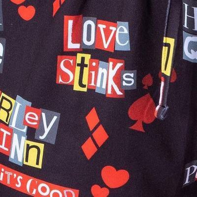 CLASSIC CHARACTER DESIGN - These DC Harley Quinn pajama pants feature a fantastic all-over print of Harley Quinn's logo, as well as the phrases "Love Stinks," "It's Good To Be Bad," and "Mad Love," in a fun block print.