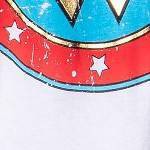Striking Emblem on a Comfortable Classic: This isn't just a plain nightgown; it features Wonder Woman's recognizable emblem in a radiant gold foil print. Wonder Woman's emblem is prominently displayed on a round red and blue shield, encircled by stars, with a distressed look, setting it apart from ordinary sleepwear