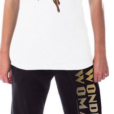 DETAILED THEME - This pajama set-top features Wonder Woman flying with her 'Lasso of Truth', and the bottoms feature the classic 'Wonder Woman' title logo.