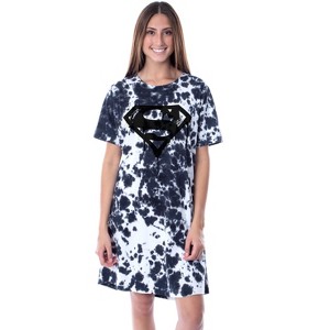 DC Comics Womens' Superman Tie-Dye Logo Nightgown Sleep Pajama Shirt Multicolored - 1 of 3