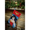 Decorate your home with this beautiful Christmas stocking featuring Wonder Woman. Beautiful applique and embroidered materials in bright vibrant colors. A must have for DC Comics and Wonder Woman fans. Stocking is made of polyester. 20" size is perfect for stuffing with lots of small stuffers. High quality materials and construction.