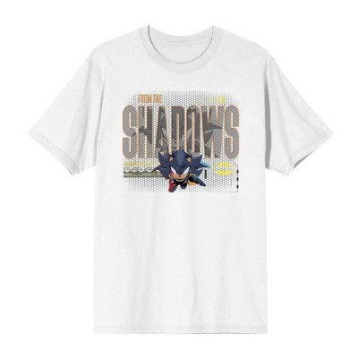 Embrace the darkness with this adult DC x Sonic apparel featuring Shadow wearing Batman's cape and standing above the hero's logo. Yellow letters around the image read, "From the Shadows, Chaos Controller." Crafted from premium cotton, this apparel merges comfort with bold fan design. For easy care, machine wash it on cold with like colors and tumble dry on low heat.