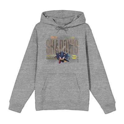 DC x Sonic the Hedgehog From The Shadows Shadow X Batman Grayscale Outline Adult Heather Gray Long Sleeve Hoodie-XXL