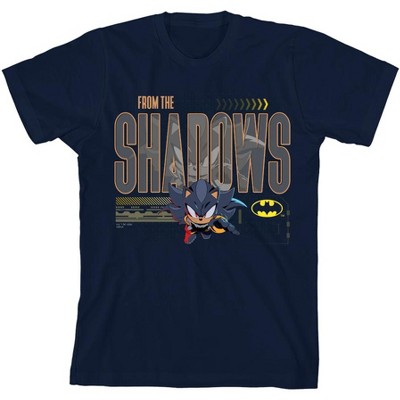 Dive into comfort and style with this adult DC X Sonic apparel featuring Shadow in a Batman costume in front of yellow outlined "From The Shadows" text with grayscale trap graphics. Made from cozy cotton, this apparel blends comfort with striking design. Simple to maintain, it can be machine washed on cold with like colors and tumble dries on low heat.