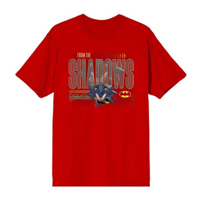 DC x Sonic the Hedgehog From The Shadows Shadow X Batman Grayscale Outline Adult Red Crew Neck Short Sleeve T-Shirt-Medium