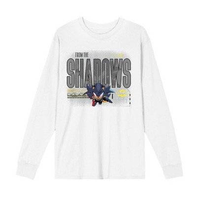 DC x Sonic the Hedgehog From The Shadows Shadow X Batman Grayscale Outline Adult White Crew Neck Short Sleeve T-Shirt-Medium