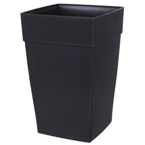 DCN Harmony Plastic Indoor/Outdoor Tall Self-Watering Square Planter, Black, 18in