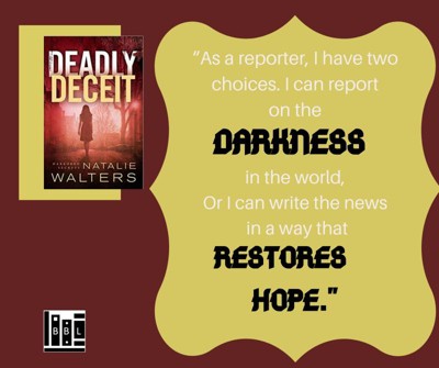 My final thought on Deadly Deceit is that Natalie delivers another fantastic book filled with suspense, mystery and romance. This book will capture your heart with its small town charm, heartwarming characters and strong messages of acceptance woven throughout the story.