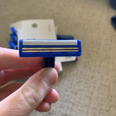 Disappointed in the switch. These new blue razors feel cheaper in quality and cost almost double the price of the Smartly version. The clean, neutral white color of the old razors looked better and felt sturdier. Not a fan of this change. Bad move, Target.