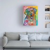This ready to hang, gallery-wrapped Wall Décor Living Room Canvas by Trademark Fine Art features a colorful dog painting on a canvas. that'll look great in any bedroom, kitchen, bathroom, or apartment. Whether it's contemporary, rustic, modern, or traditional style wall décor, Trademark Fine Art offers a variety of high-quality, carefully built wall art that will surely complement any style with art themes that range from fascinating abstracts to breathtaking landscapes. Each bathroom wall art canvas is printed on durable cotton poly blended canvas using Giclee, a process for creating high-quality fine art reproductions that are nearly indistinguishable from the original piece. From the bedroom to the living room, or even the office, Trademark Fine Art makes professionally handcrafted, ready to hang wall décor that will be admired for years to come.