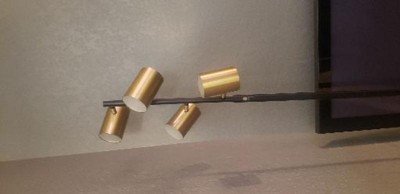 - Black and brass spotlight floor lamp with LED bulbs