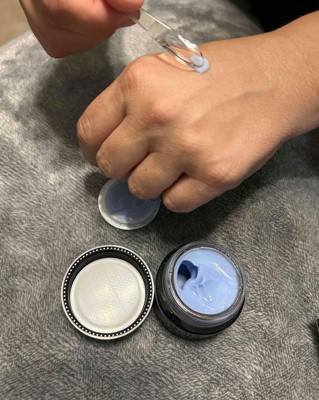 [This review was collected as part of a promotion.] This cream does not have a strong scent and is a pretty blue color. The jar is somewhat small but the cream is only meant for spot treatments to calm Down skin. The spoon to scoop the product out is very helpful. I really did not feel much of a improvement where i placed this calming cream. I received an incentive to write this review.