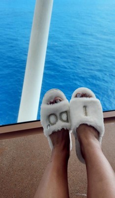 These slippers were the perfect gift for my friends on my bachelorette. I loved them so much. We did a cruise so it was perfect that they are non slip and have such a great grip. Also they were perfect for relaxing and walking around the cruise since we are in heals all night. It made the entire trip the memory foam is so comfy, and they are the most adorable thing ever. I’m having all the girls bring them to the wedding!