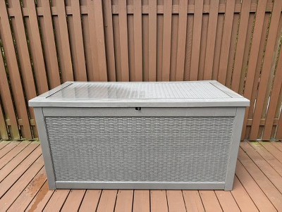 This large deck box offers ample storage space for cushions, tools, and more. Choose the size that fits your needs—available in 150, 200, 230, and 260 gallons. The lockable lid adds extra security, while the waterproof and UV-resistant design protects your belongings from rain and sun. Its sleek gray exterior complements any outdoor space.