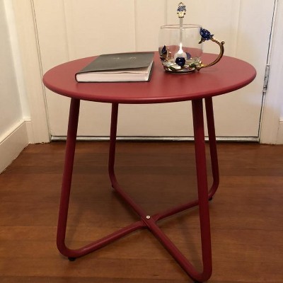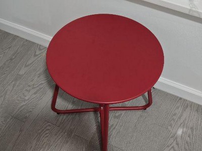 Very nice little red table. The material of metal is very strong.The cross shape at the corner of the table is particularly elegant and beautiful.