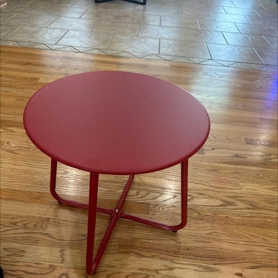 Absolutely love this table! The red color is vibrant and adds a nice pop to my space. The matte finish give it a sleek. Modern look that fits perfectly with my decor. It’s lightweight. Making it super easy to move around.