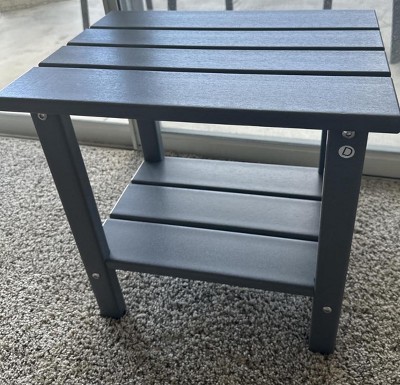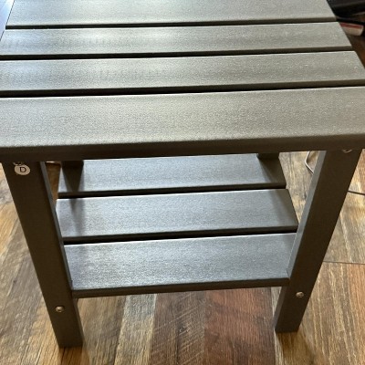 I'm absolutely thrilled with my new Decksplore 2-Tier HDPE Adirondack Side Table! The gray color is sleek, and the HDPE material is incredibly sturdy and weatherproof. It's already stood up to rain and looks brand new. The two-tier design is incredibly practical, offering a perfect spot for drinks and books on top, plus extra storage below. Assembly was a breeze, and it's easy to move around. Highly recommend this high-quality, attractive, and functional piece. Five stars!