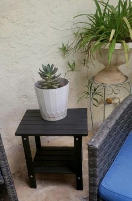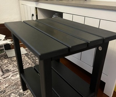 I bought this side table to go with our Adirondack chairs, and it’s honestly exceeded my expectations. The table feels super sturdy and well-made — definitely not flimsy like some plastic outdoor furniture. I love that it’s made from HDPE, so I don’t have to worry about it warping or fading in the sun or rain. The two-tier design is really practical — we use the top for drinks and snacks, and the lower shelf is great for books or a small plant. Assembly was a breeze; I put it together in under 15 minutes with no hassle. Also, the white color looks clean and classic — it really brightens up our patio space. It’s held up perfectly through a few rainy days already. Highly recommend if you’re looking for a durable, attractive, and low-maintenance outdoor table!