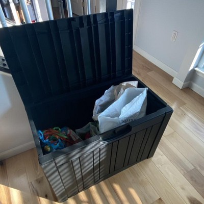 - Sturdy handles and great value make this deck box ideal for outdoor storage