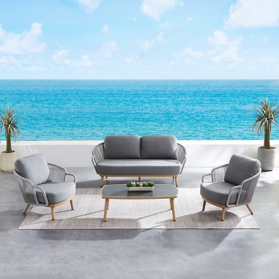 Crafted from rich, solid teak and handwoven weather-resistant rope, this 5-piece conversation set blends natural elegance with artisanal charm. The warm wood grain and textured rope create an organic, high-end look that elevates any outdoor space—whether it's a cozy backyard or a breezy patio.