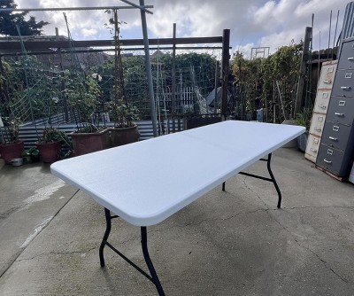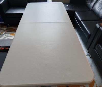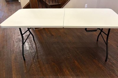 The folding table is sturdy and easy to set up. It folds and unfolds smoothly, and the handle makes it convenient to carry around. The surface is easy to clean and large enough for family gatherings or small events. It’s a bit heavier than I expected, but overall a good and practical purchase for both indoor and outdoor use.