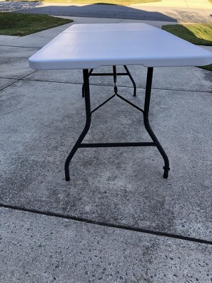This table is quite sturdy, yet light for ease of moving and handling. We use it for tailgating, and it is perfect. Great length (6') for premade tablecloths as well. Folding it up is very easy to do.